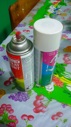 2. Luego se procede a pintar con pintura de spray, opaca o esmaltada según su preferencia. Primero por el frente…un ligero chorro de pintura para evitar que se formen gotas y se tarde en secar, después por un lado, por el otro y si es necesario por la parte de atrás. Por cada paso se deja secar entre 5 y 10 minutos según la superficie del botón.